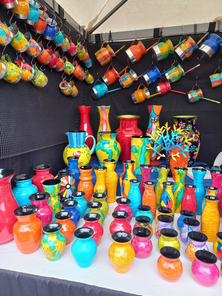 As for the "market," it is continuously and everywhere referred to as a "flea market" (mercado de las pulgas), but it is not a flea market in the true sense of the word. I would rather say that there are artisanal galleries whose artists and craftsmen set up stalls on Sundays to exhibit and sell their goods. There were extraordinarily beautiful things there; the only problem is that I don't like to shop. However, I immensely enjoyed the sights. What was particularly striking were the vivid colours.