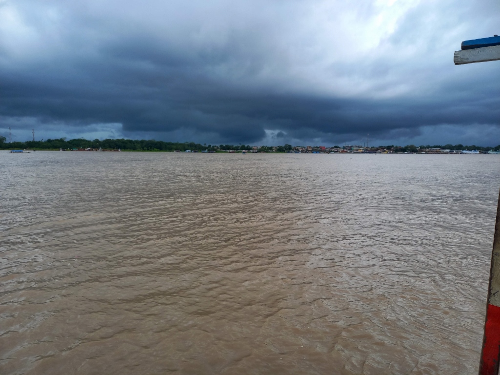 From there, I could now see the left bank of the Amazon where the border between Colombia and Brazil is located, and there, a serious rainstorm was brewing.