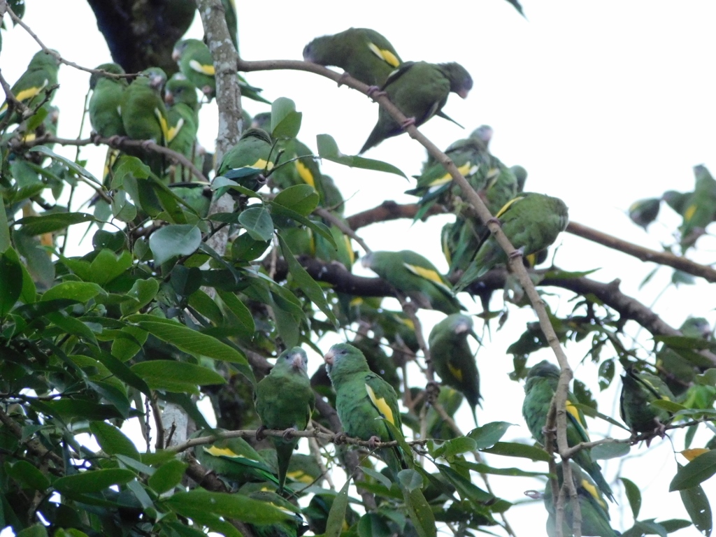 However, when it comes to Leticia, probably no bird species is more impressive in terms of abundance than the canary-winged parakeet (Brotogeris versicolurus). To see them, all you need to do is go to Santander Park (Parque Santander) towards the end of the day. That's where I headed, walking through the town's streets.