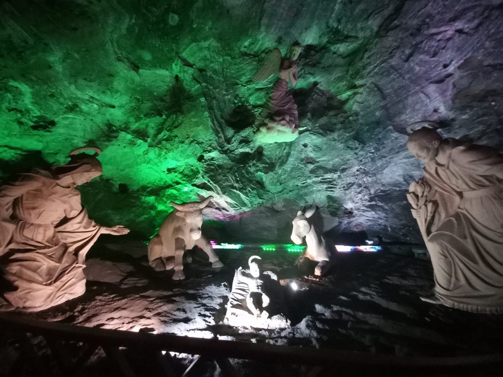 I don't know if these situations are symbolically depicted in these "chapels," which vary in size from smaller to quite large spaces (some resembling balconies overlooking a vast area where salt was once excavated), but I leisurely visited each one. Here are just a few photographs, not all. As seen in them, all these chapels are illuminated with strong coloured spotlights, while the colours change.