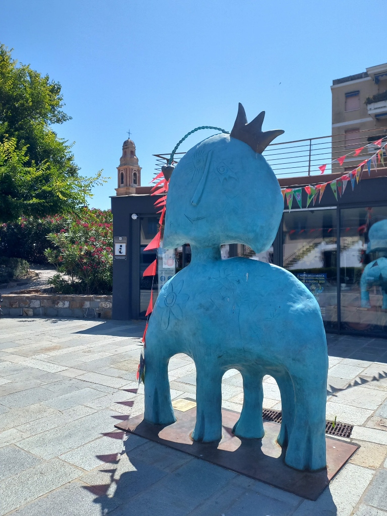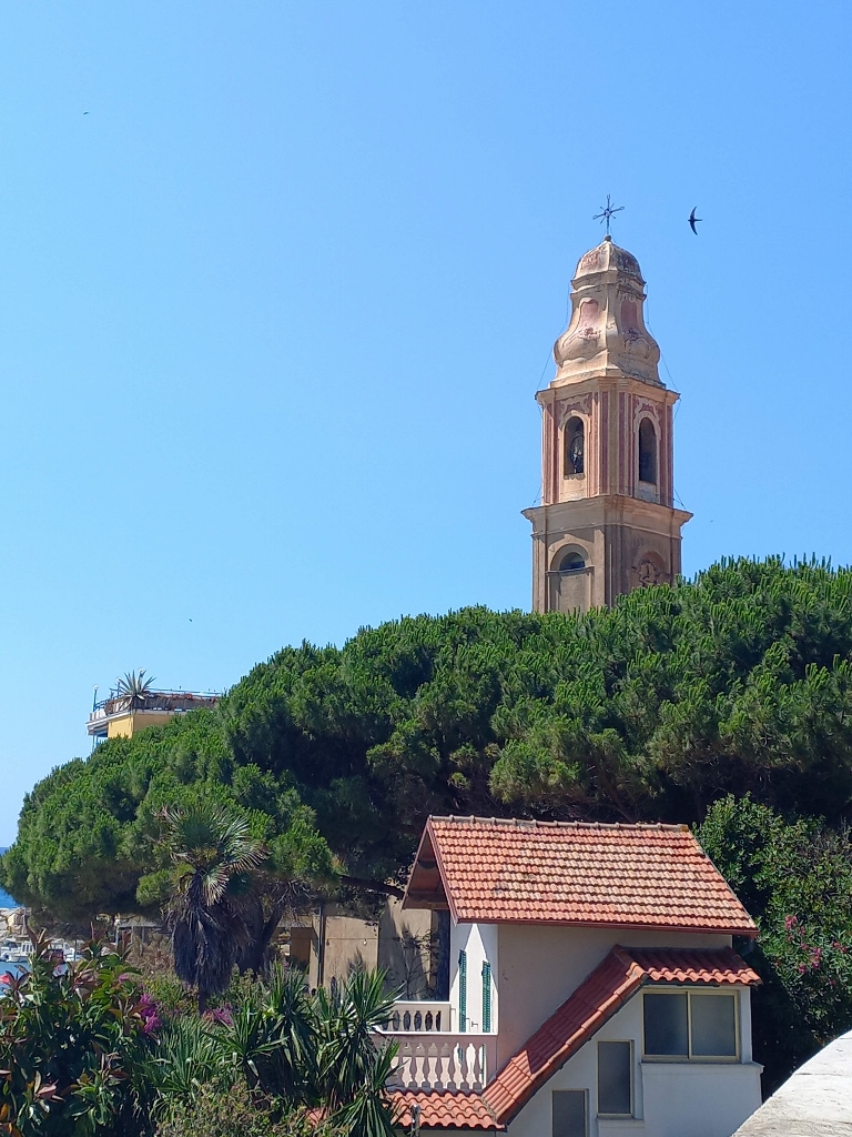 Besides the presence of one of the many beaches there, we also passed by a nine-sided tower, which is called Torre Ennagonale in Italian. Construction began in 1564 when this territory belonged to the Republic of Genoa and it was completed a few years later. It served as a defensive tower against frequent attacks by Saracen pirates. Today, it houses the town hall.