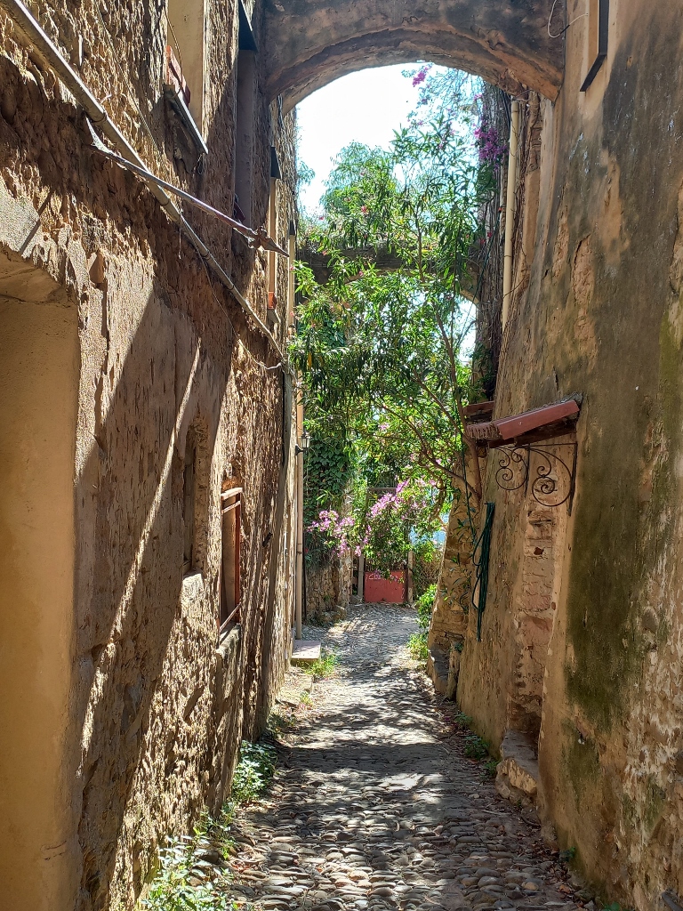 Here we started back along the “Riviera dei Fiori” cycle path, but in trying to find a pharmacy so I could buy a band-aid, we had to leave it and thus took alternative routes.