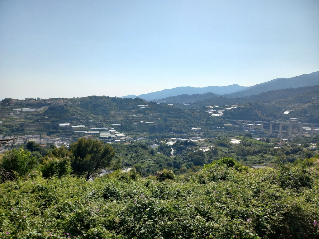As we slowly made our way back to the car, Francesco and I stopped at a viewpoint overlooking parts of the Riviera west of Bussana Vecchia. In the next photo, you can just make out numerous glass greenhouses where flowers are cultivated. This is exactly why the entire coast from Grimaldi di Ventimiglia in the west to Cervo in the east is called the Riviera dei Fiori or Riviera of Flowers.