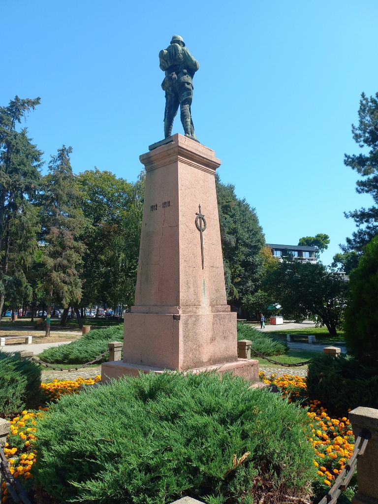 The monument was unveiled on 23 October, 1927, to mark the 50th anniversary of the liberation from the Turks. It consists of an obelisk made of artificial stone and a bronze figure of a fully equipped warrior.