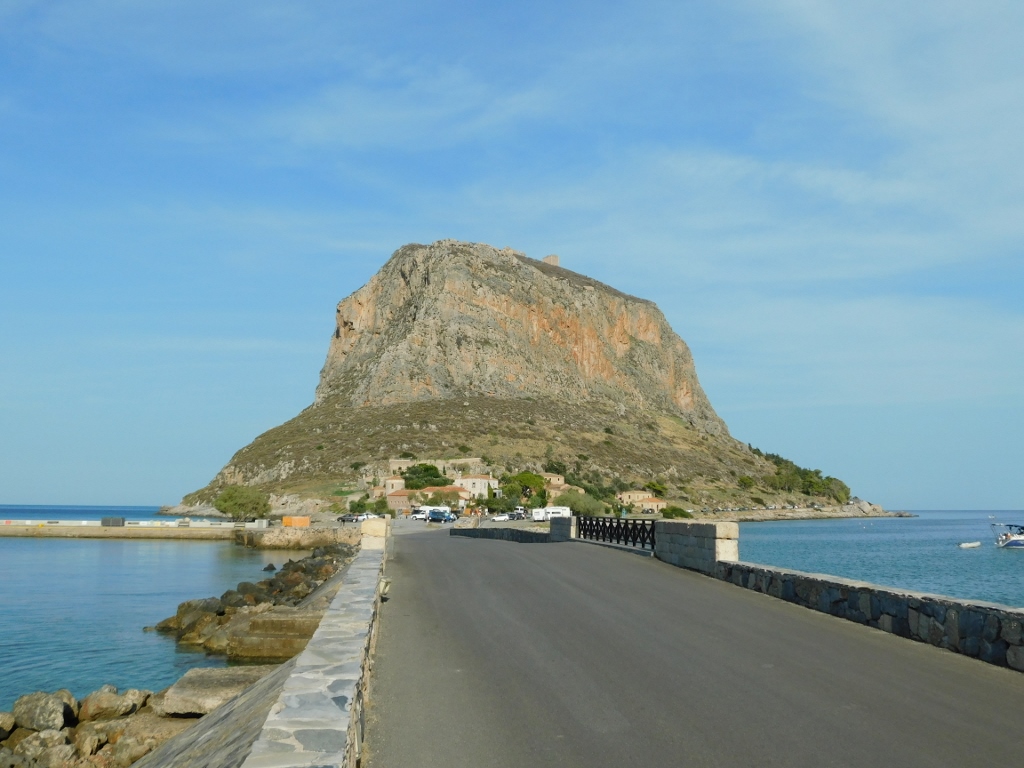 On the eastern coast of the Peloponnese, which stretches along the Myrtoan Sea, there is a small island about 1 km long and 300 m wide, in the middle of which rises a huge rock with a peak that stands about 300 m above sea level. The island is only about 200 m from the mainland but is connected to it by a narrow causeway. On the island, there is an ancient picturesque village called Monemvasia, while directly across on the mainland is the town of Gefira, where I had booked a hotel room for two nights.