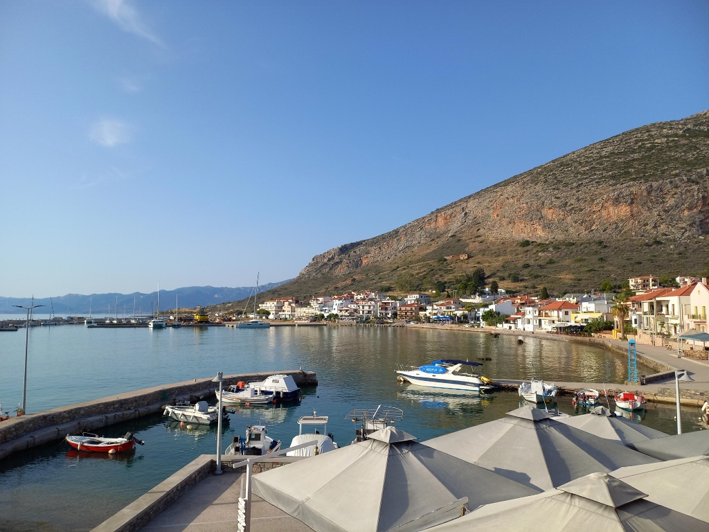 However, even though I had designated this as a free day, it didn’t mean I would spend the entire day on the balcony. Soon, it would get too hot there anyway. I gradually got ready and then drove less than 40 km to a port where a ferry goes to the small island of Elafonisos, which has a settlement with restaurants and two beautiful beaches. My plan was to check it all out and also take a swim, as the forecast predicted temperatures over 30 degrees C. It was the second half of September, but I was in the very south of Greece.
