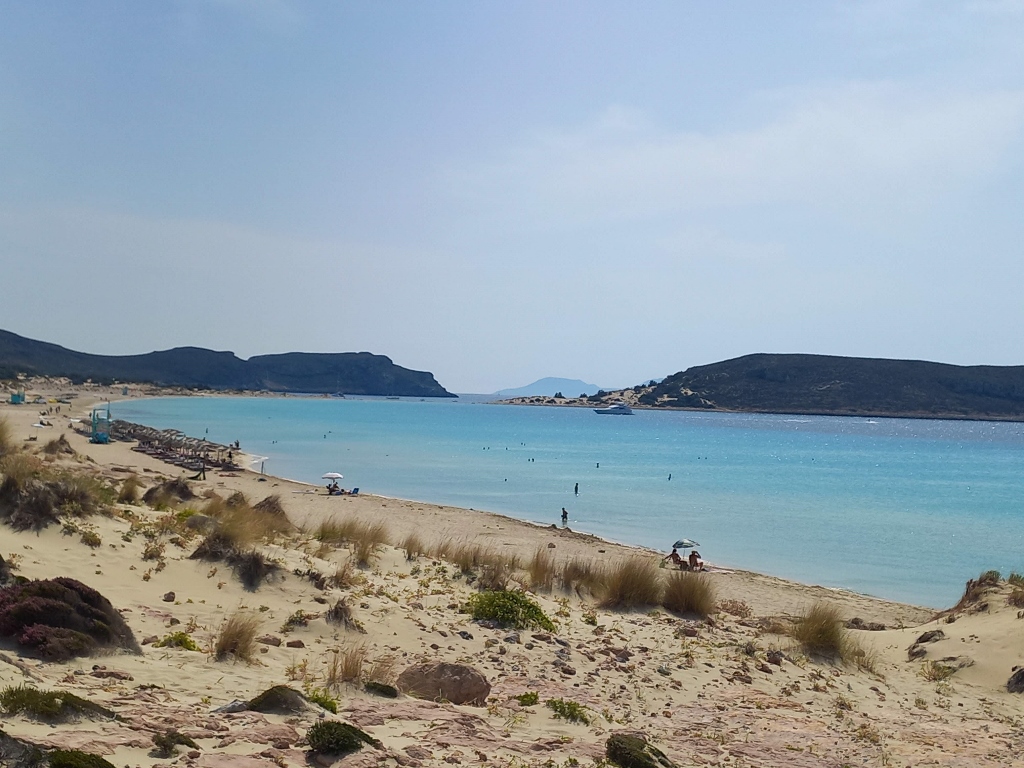 And yet, I first climbed up some sandy dunes here. On the one hand, I found it interesting and wanted to get a better look at some of the flowers growing there, while on the other hand, it allowed me to have a better view of the southern segment of Simos Beach.