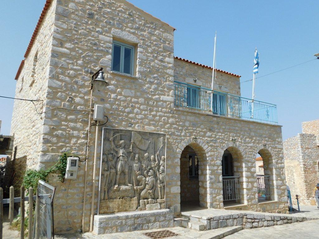 In the spacious square you first encounter when entering the town from the main road, there stands a monument to the "Hero of the Immortals," Petrobey Mavromichalis.