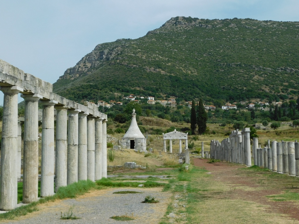 Directly in continuation are the remains of a circular temple, a tholos, dedicated to Aphrodite.