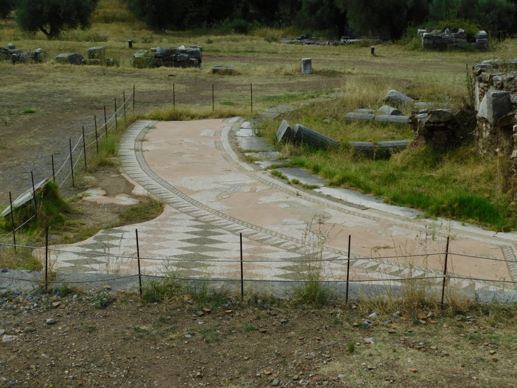 The beautiful floor mosaics stand out, including a depiction of the mythical queen Messenia.