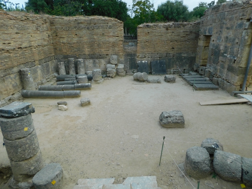 The next structure to the left from the direction of the entrance, which was already within the Altis, or the sanctuary itself, is the Prytaneion from the 5th century BCE. This was a rectangular building that housed the priests responsible for offering sacrifices at the altars. It also served as a venue for festivities for honoured guests and visitors of the Olympic Games. In addition, this building contained a hearth dedicated to the goddess Hestia (daughter of the titan Kronos, after whom the hill was named, and sister of Zeus), who was the goddess of the domestic hearth, family and home. This flame was considered sacred and eternal, which is why this structure is sometimes referred to as the Sanctuary of the Sacred Flame.