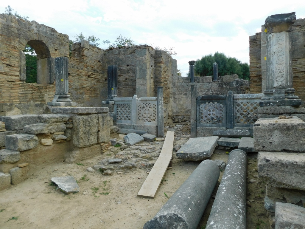 In order to reach these baths, I passed by a much more important structure, so now I made my way towards it. This is an early Christian basilica built on the site of the workshop of the famous and probably the most well-known ancient Greek sculptor, Phidias. I had already mentioned him when I wrote about my visit to the Acropolis in Athens in 2022 (see: https://www.svudapodji.com/en/crete-25/).