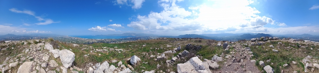 To start with, I drove up the hill and after leaving the car in the parking area, I began my visit on foot. However, I first went to a spot from which you can see a part of the views that stretch around from Acrocorinth.