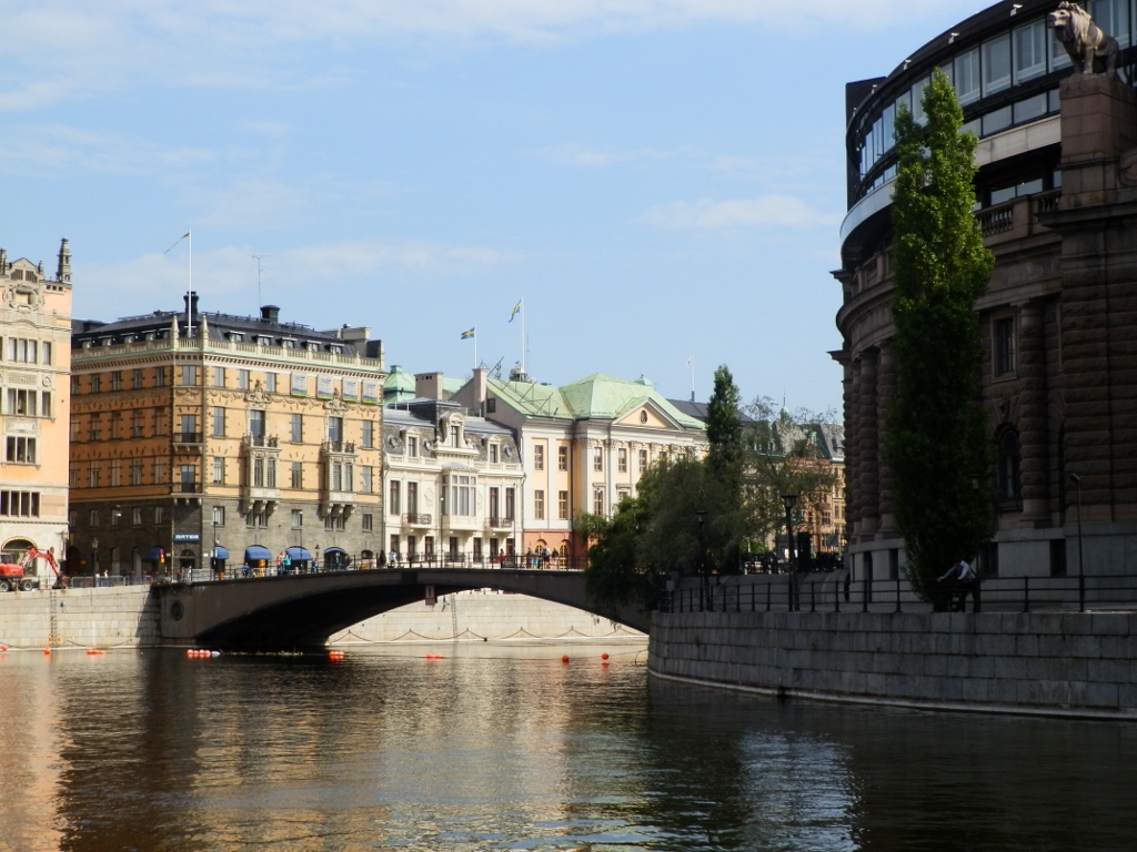 On the other side, I photographed part of the Island of the Holy Spirit or Helgeandsholmen, which is connected by a bridge to the commercial areas of Stockholm.