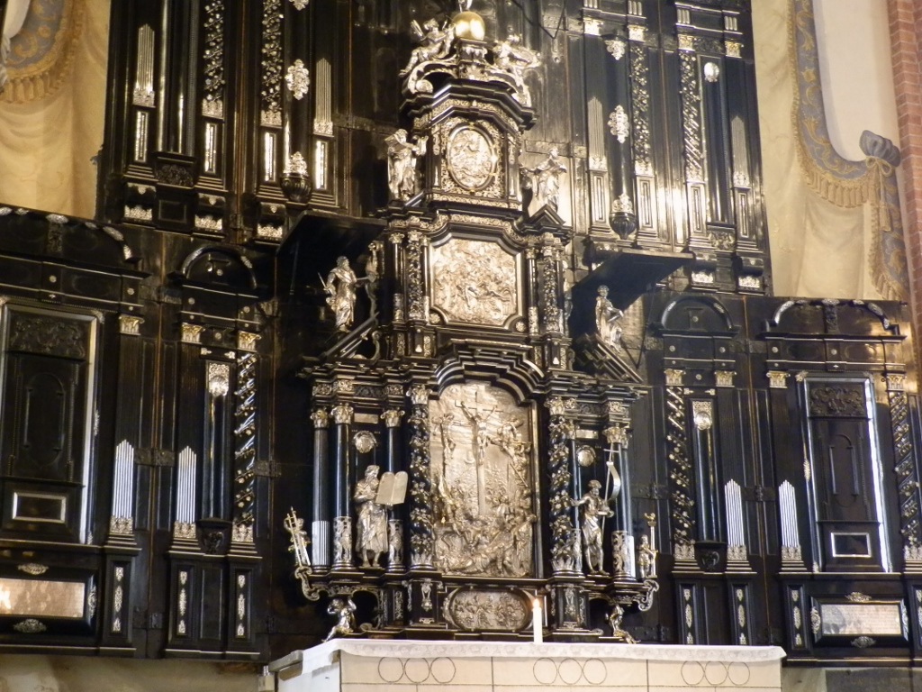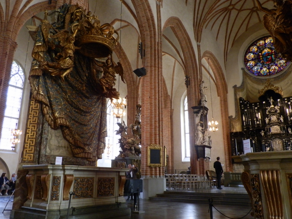 The interior of Storkyrkan is rich with historical and artistic details that testify to its significance. The main altar dates from the mid-16th century and is crafted in the Dutch Renaissance style, featuring impressive wood carvings and gilding.