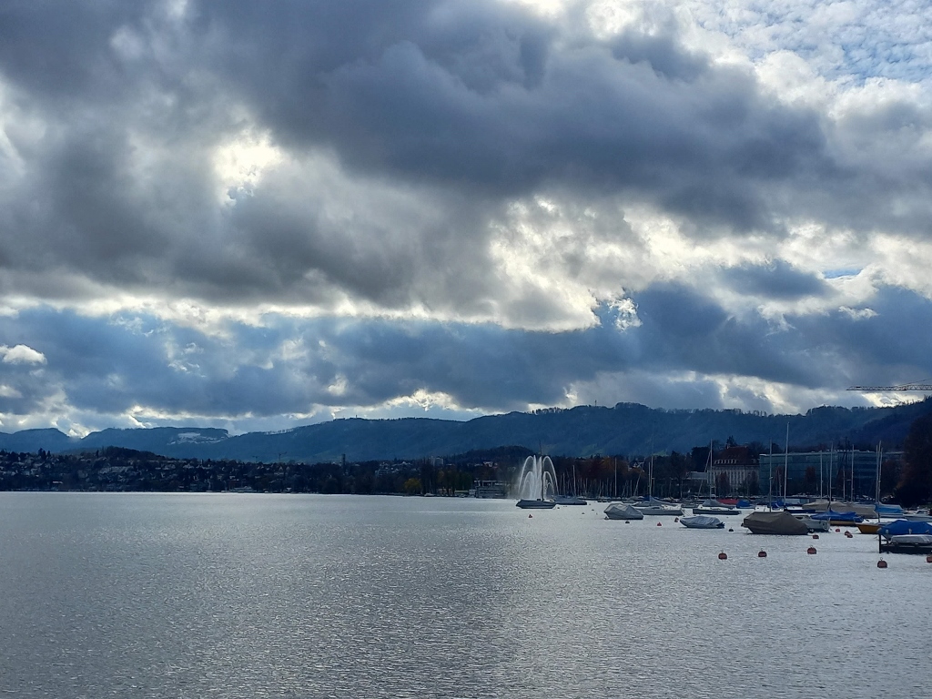 A few days before the trip, I started following the weather forecast for Zurich to prepare and plan my daily outings better, and according to the forecast, the first day was supposed to be completely cloudy. However, although dark clouds occasionally gathered, as will be seen in my upcoming photos, there was actually more sunshine. It was quite cold, though, but it was dry, and I really appreciated that.