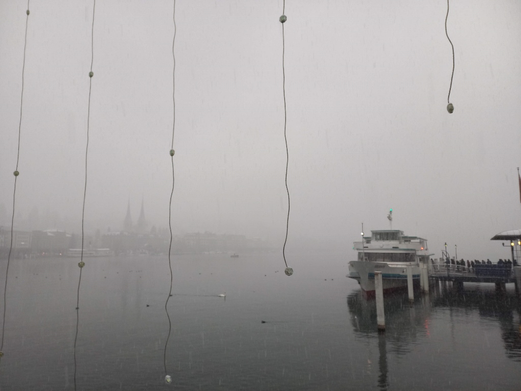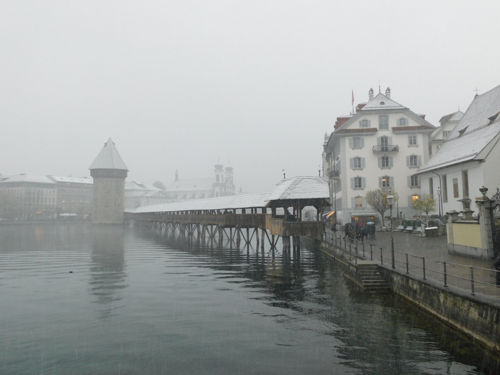 By the time I returned from Kriens and started heading towards the Old Town, the clouds had already descended and snow was falling continuously. At first, I looked towards Lake Lucerne, which was now shrouded in mist, and I was glad that I had taken the boat trip before this change in the weather, as I was still able to see something.