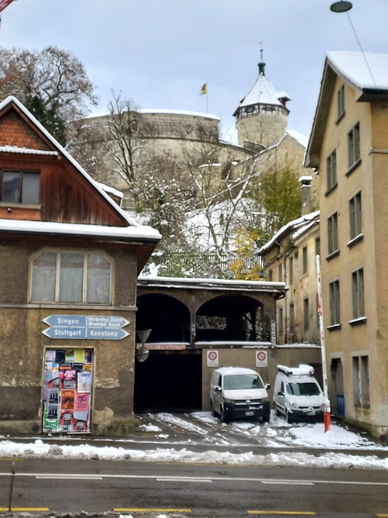 I was thinking whether to go somewhere for a coffee and possibly some cake, but towards the end of my walk through Schaffhausen, a bit of blue sky started to appear, so I decided not to take a coffee break in the town itself. Instead, I chose to head to the Rhine Falls.