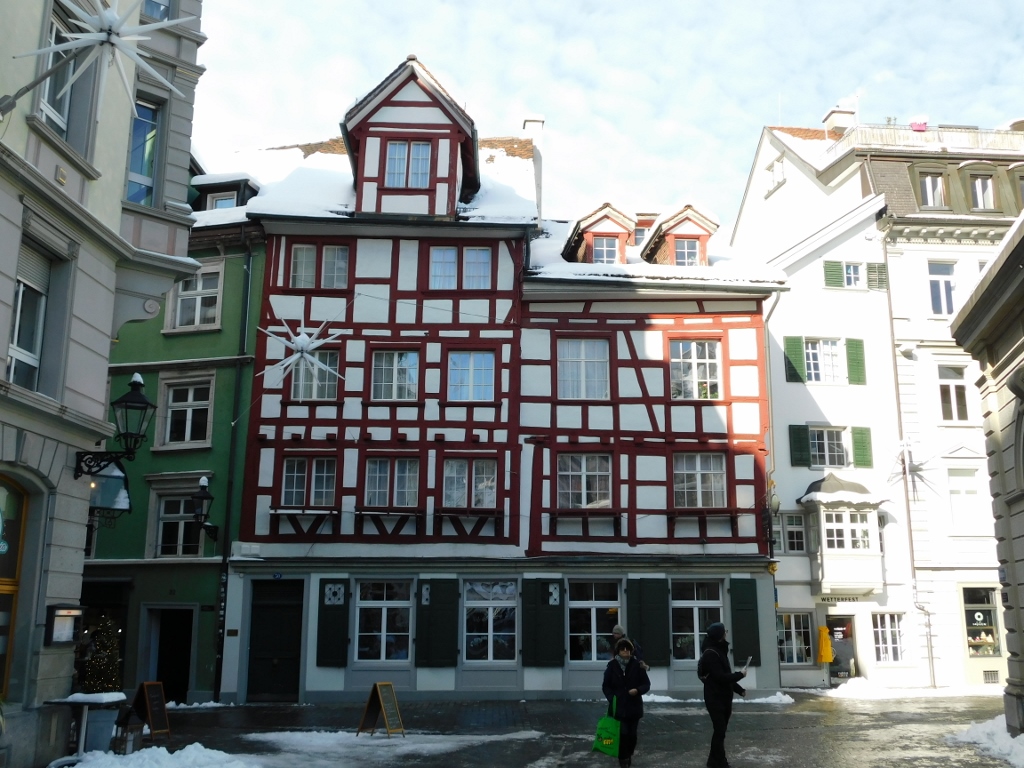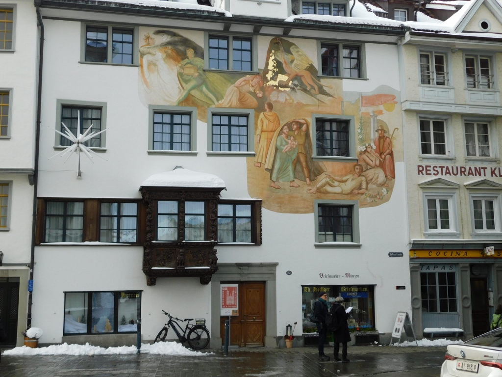 However, in this small section of Galusstrasse behind the cathedral, there are several exceptionally beautiful buildings and details, and this stretch continues into a square, Gallusplatz.