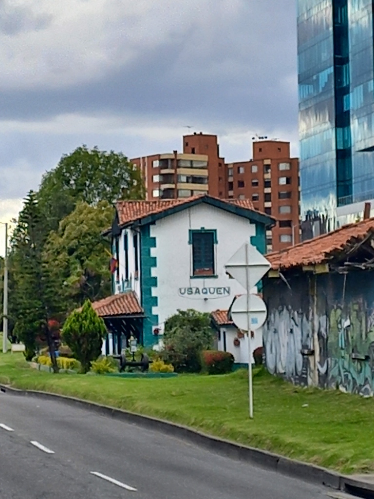 Ipak, sada sam već bila spremna da se vratim u centar Bogote, pa sam ponovo pozvala Uber. Morala sam malo da sačekam i tako sam snimala još zanimljivih prizora. Na sledećoj fotografiji se vidi još jedna savremena zgrada, ali i neka stara kuća koja je u fazi raspadanja.