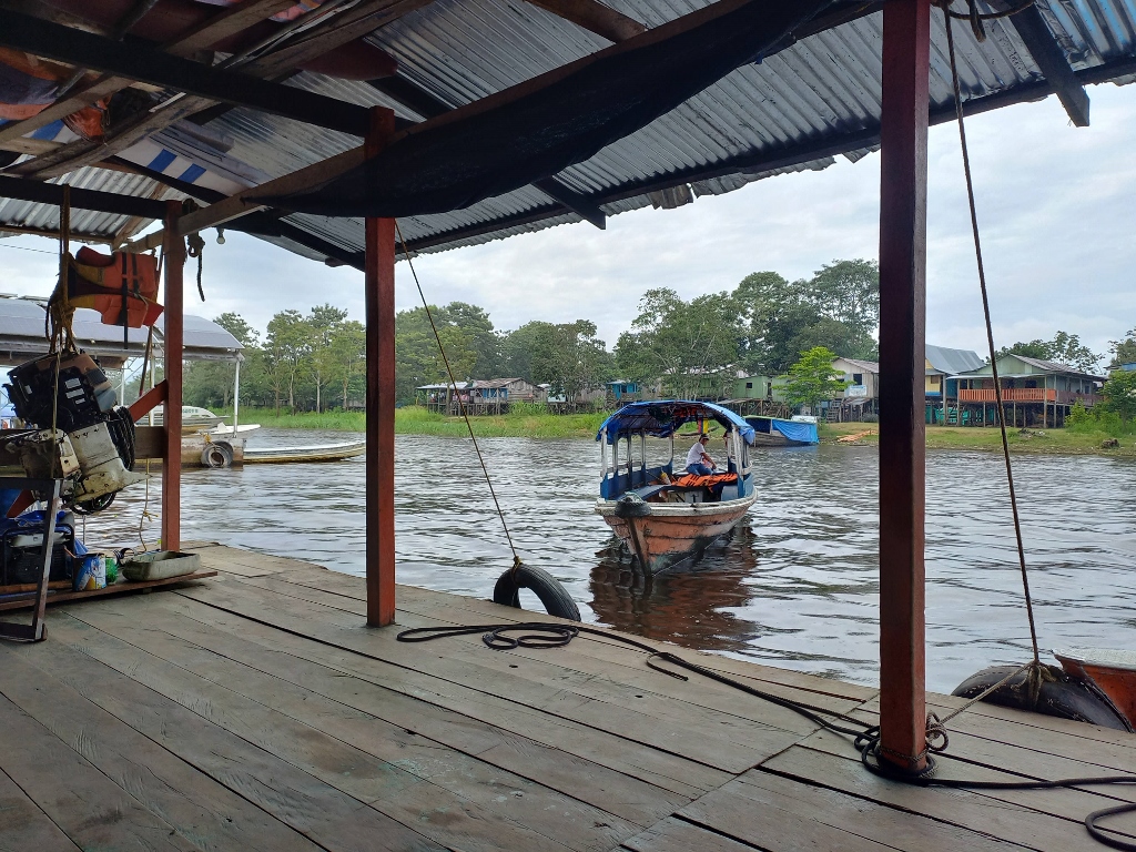 Bilo kako bilo, ja sam sada bila spremna da odem na ručak, a za to sam smislila da je najbolje da u stvari odem u Peru! Zato sam se spustila do jednog od splavova-pristaništa odakle je trebalo da se čamcem prebacim do ostrva Santa Rosa de Javari koje se nalazi na desnoj obali Amazona i pripada Peruu.