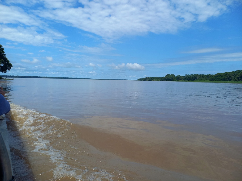 Pogled sa pristaništa: levo se vidi glavni tok Amazona, a desno je taj rukavac