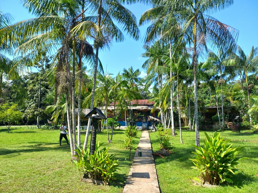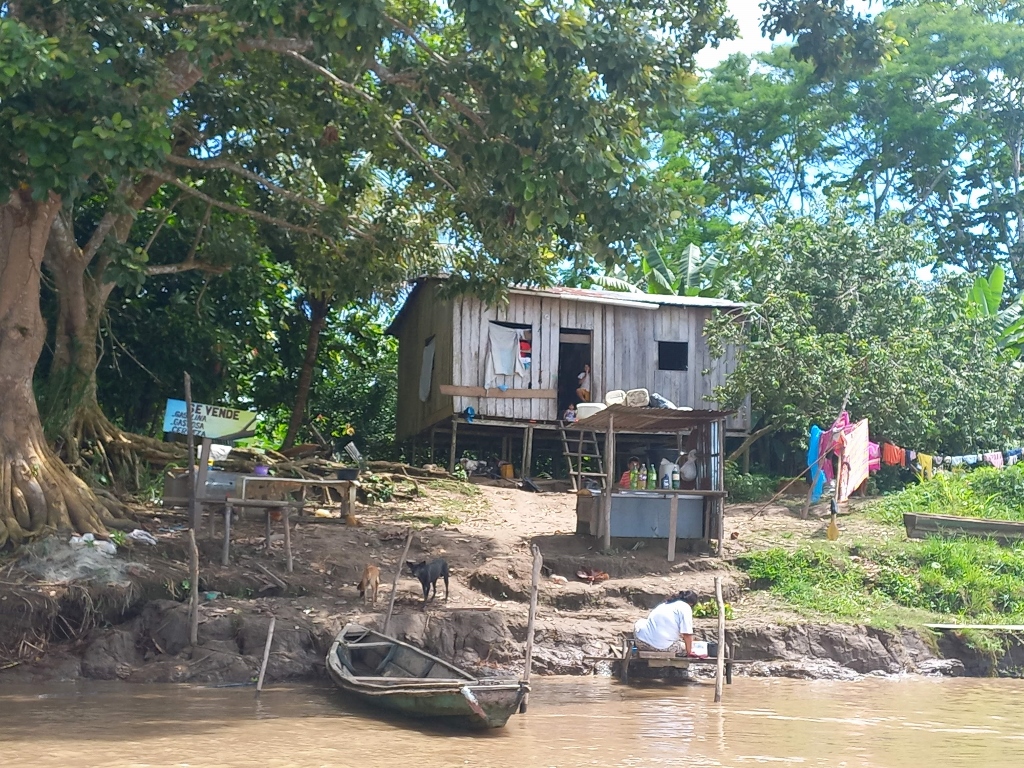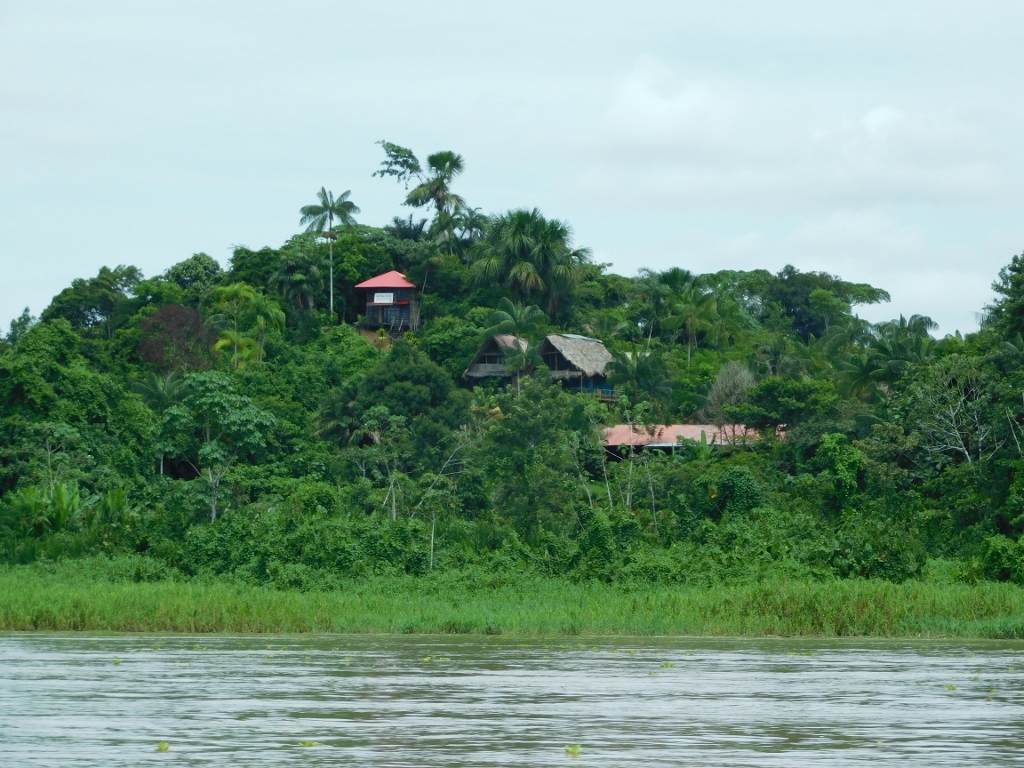 Ali, osim što ima lokalnog stanovništva koje živi na obali Amazona, tu dolaze i posetioci iz raznih delova sveta, a za njih treba obezbediti i smeštaj. Na sledećoj fotografiji se, osim objekata uz obalu, može gore desno videti krov znatno veće kuće, a na sledećih par fotografija se još i bolje mogu videti različiti veći objekti koji se verovatno koriste u turističke svrhe.