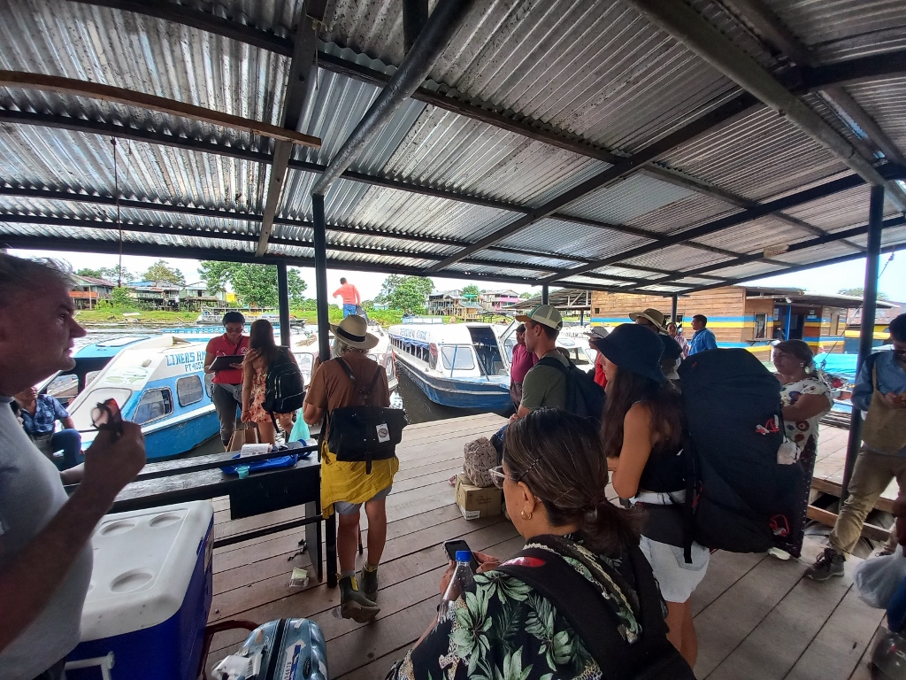 Prethodnog dana sam po povratku sa rečnog ostrva Santa Rosa u Peruu svratila kod prevoznika i kupila kartu za brod koji vozi do mesta Puerto Narinjo, tako da ovog jutra nisam morala baš da žurim i to mi je svakako prijalo. Ipak, prevoznik insistira da se do pristaništa dođe sat vremena pre polaska, tako da sam se uskoro vratila do pansiona, uzela svoje stvari i prebacila do luke i splava sa kojeg se ukrcavalo u brod.
