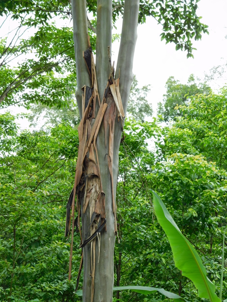 I ono može da bude dosta visoko, do 30 m, ali je jedna od njegovih glavnih odlika – sjajna, zelena kora. S druge strane, drvo se redovno „ljušti“, pre svega da bi se na taj način otarasilo lišajeva, gljivica i sl, a svakako jednom do dva puta godišnje u potpunosti odbacuje gornji sloj kore, pa se onda pojavljuje novi. Inače, drvo raste vrlo brzo i smatra se da već za osam godina dostiže dovoljnu zrelost da može da se seče i koristi za industrijske svrhe.