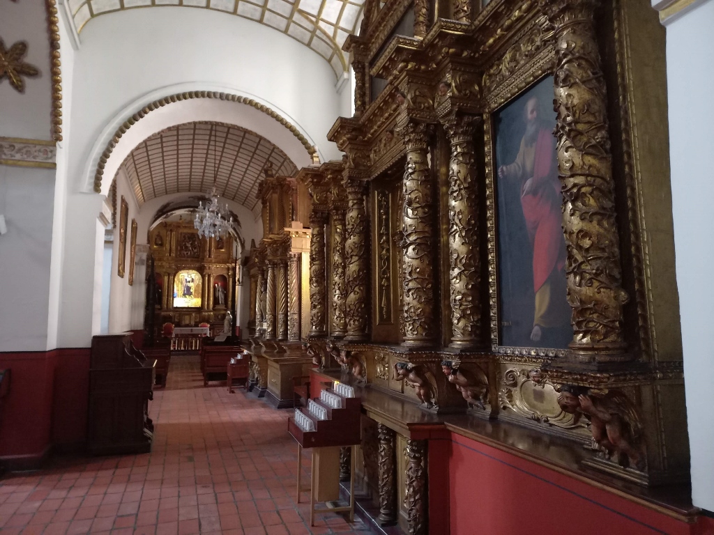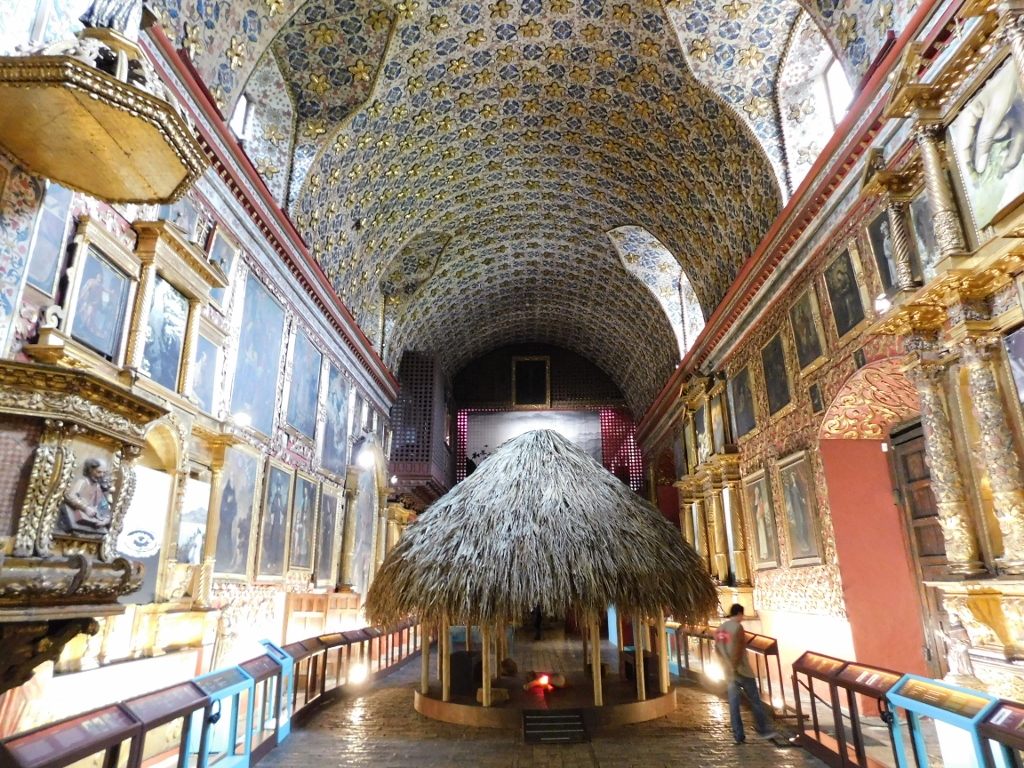 U središtu naosa je u vreme moje posete bila postavljena i malena koliba jer ona ilustruje deo života starosedelaca koji su naseljavali teritoriju današnje Kolumbije, a u sred kolibe se može videti veštačko ognjište. Ne znam da li je ovo danas deo stalne postavke, ali eto, bilo je tu kada sam došla u crkvu-muzej.