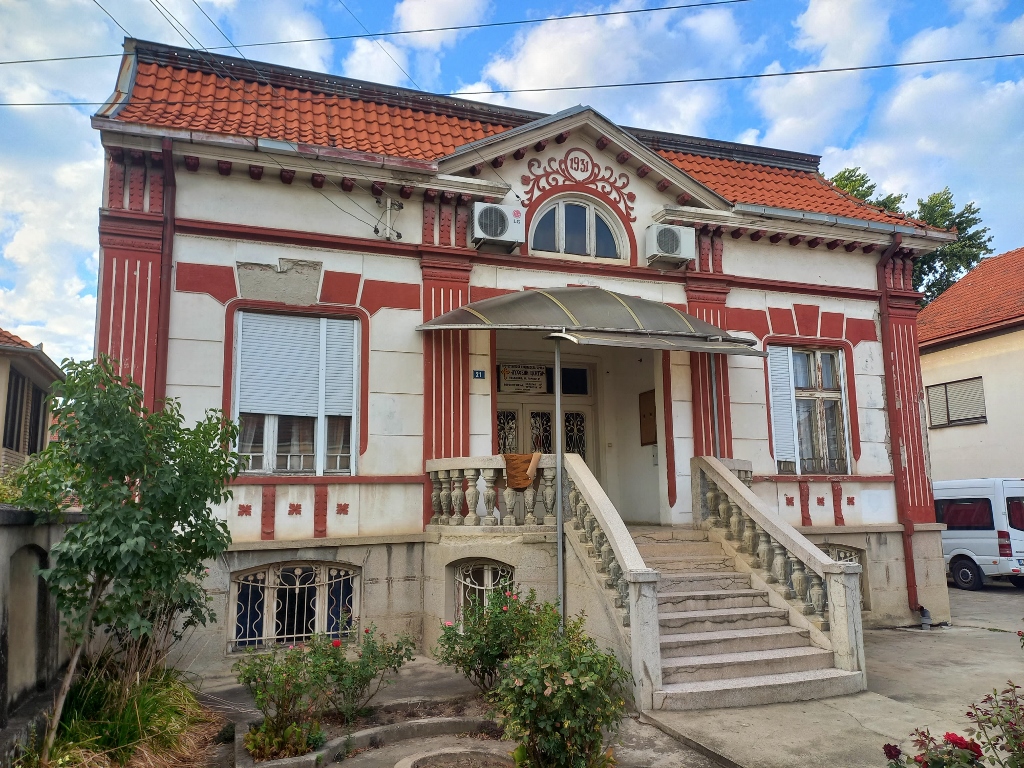 Ona je sagrađena početkom XX veka kao stambena porodična kuća koja se sastoji od podruma i visokog prizemlja, i ima pravougaonu osnovu. Sokl koji prekriva nivo podruma napravljen je od kamenih blokova, a spoljašnja dekoracija je skladno izvedena. U kuću se ulazi iz dvorišta preko stepeništa koje vodi ka uvučenim ulaznim vratima. Koliko sam čitala ta ulazna vrata su posebno lepa zbog bogate dekoracije sa rezbarijom. To se na mojoj sledećoj fotografiji može videti samo delimično.