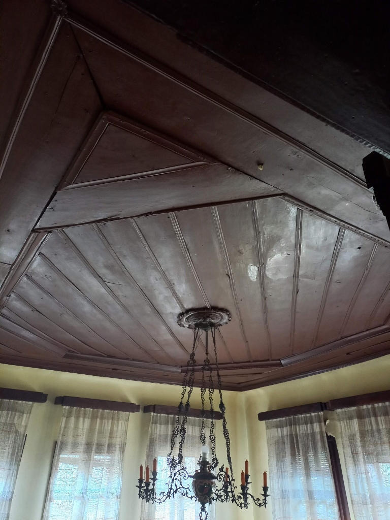 Zatim smo se popele i na sprat gde ima više prostorija, a posebno su zanimljive ukrasne tavanice od hrastovih dasaka.
