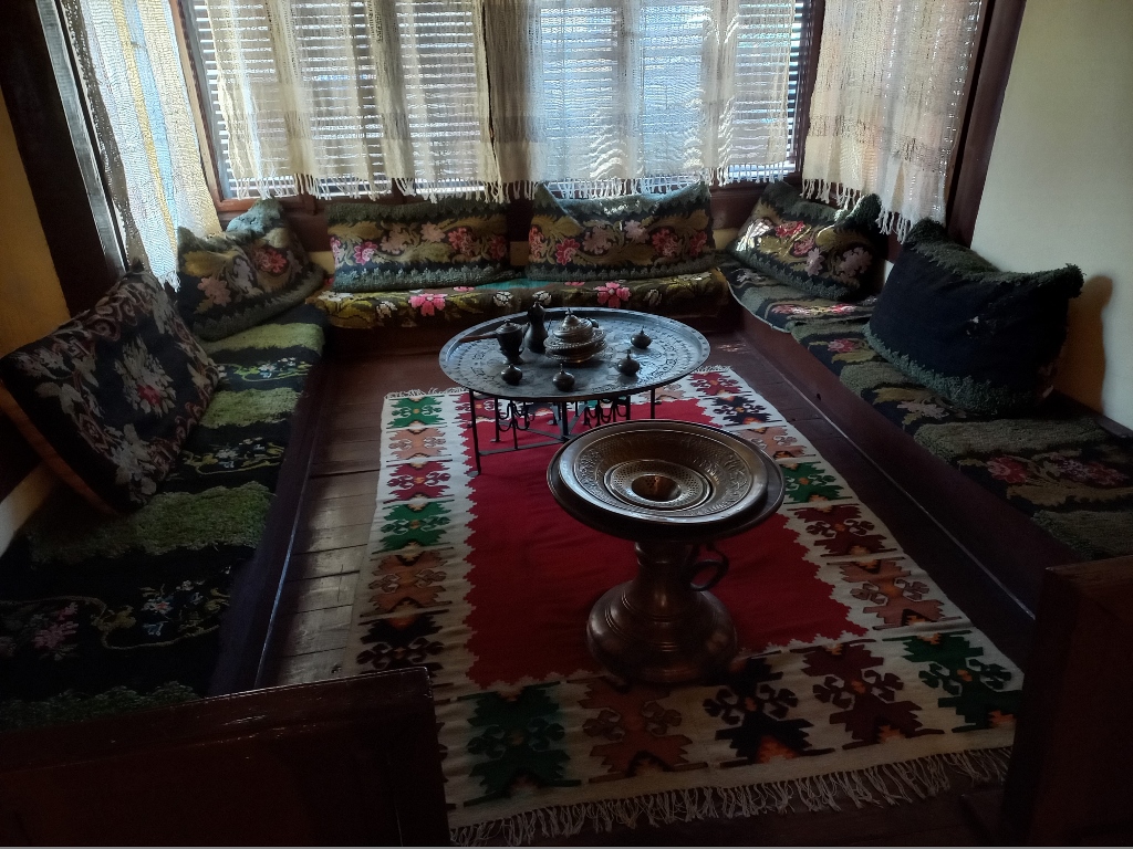 Na spratu se nalazi i divanhana okrenuta dvorištu. I tu su i tavanica, kao i pod urađeni od hrastovih dasaka.