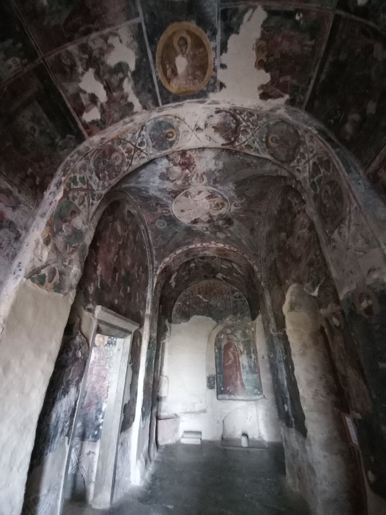 Manastir deluje dosta zabačeno u odnosu na druge manastire i crkve u Mistri, a svakako je i veoma mali. Ipak, ovaj manastir i njegova crkva se meni čine kao najlepši i najslikovitiji. Prvo sam malo kružila po porti.
