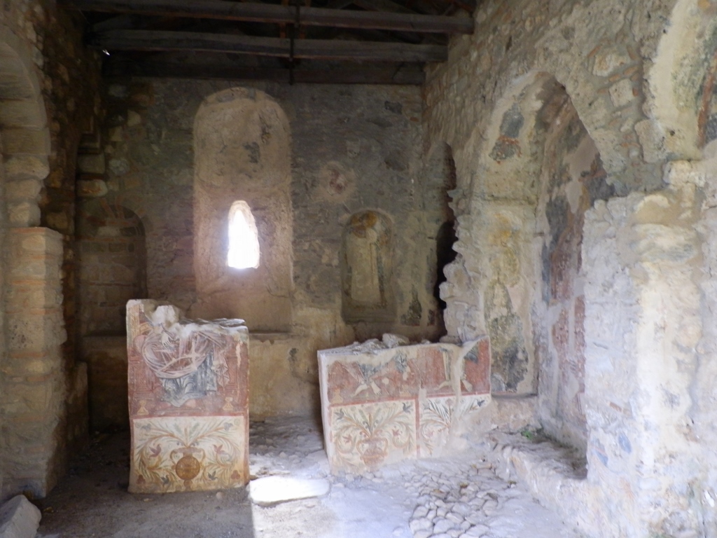 Inače, i ova crkva ima dve osnove, što je stil tipičan za Mistru – donji nivo je u vidu trobrodne bazilike, dok gornji deo ima krstoobraznu osnovu. To se prilično dobro vidi na sledećoj fotografiji.
