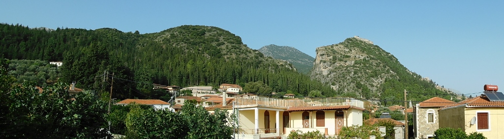 Posle doručka, a pre nastavka putovanja sam sa terase ispred sobe još jednom snimila pogled ka impresivnom lokalitetu srednjevekovne Mistre. Da ne bude zabune, on se nalazi na uzvišenju u desnom delu slike.