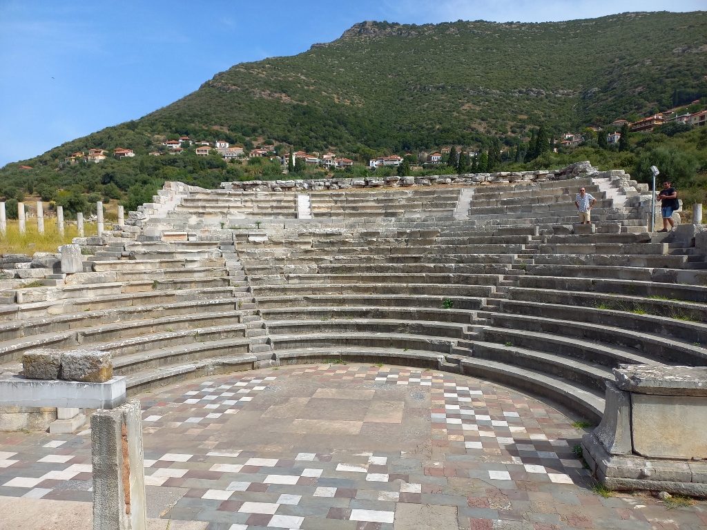 Odmah pored svetilišta posvećenog bogu Asklepiju, nalazi se i Odeon – bogovi, lečenje, politička okupljanja, ali i zabava nikada nisu bili daleko jedni od drugih kod Starih Grka. Odeon se već vidi na prethodnoj slici desno, a evo ga na još par fotografija.