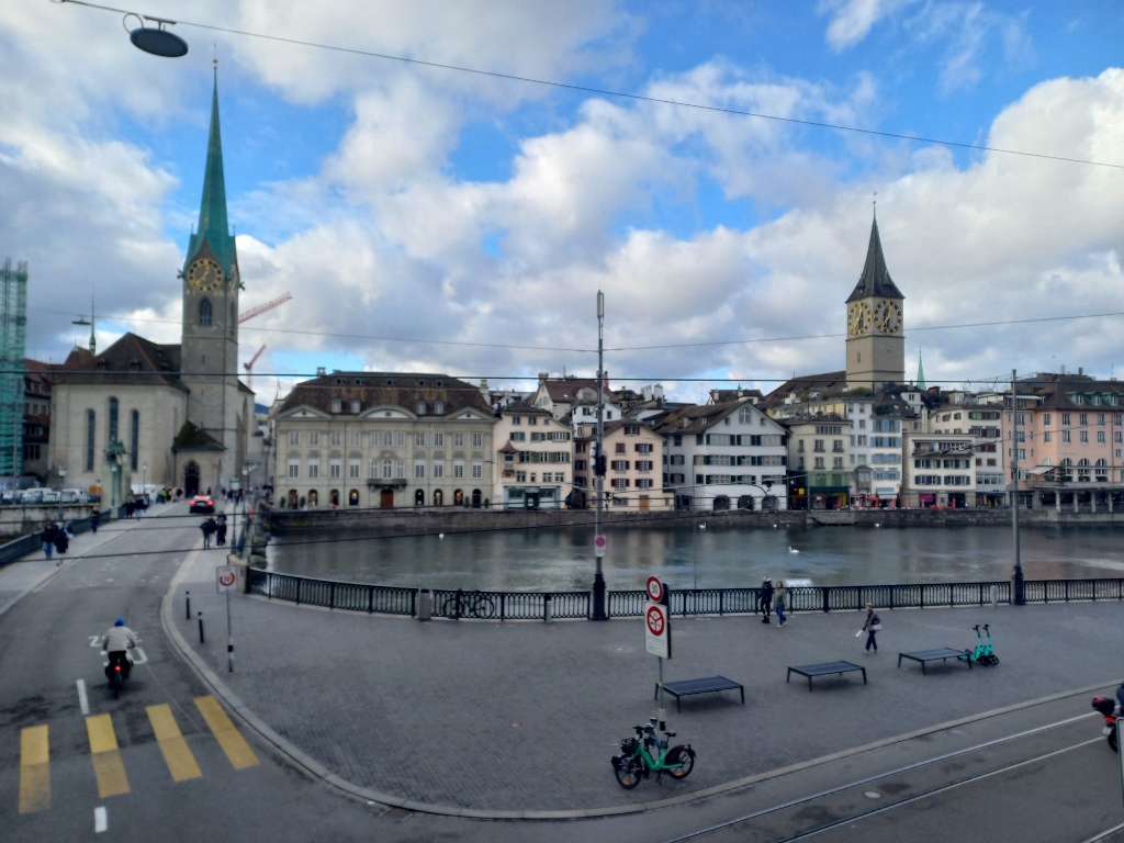 Sa mosta sam mogla lepo da vidim i nizvodni tok reke Limat, kao i delove Ciriha kroz koje sam već prošla, a u kojima se nalaze neka od znamenitih mesta – crkva Sv. Petra, Gradska većnica i katedrala.