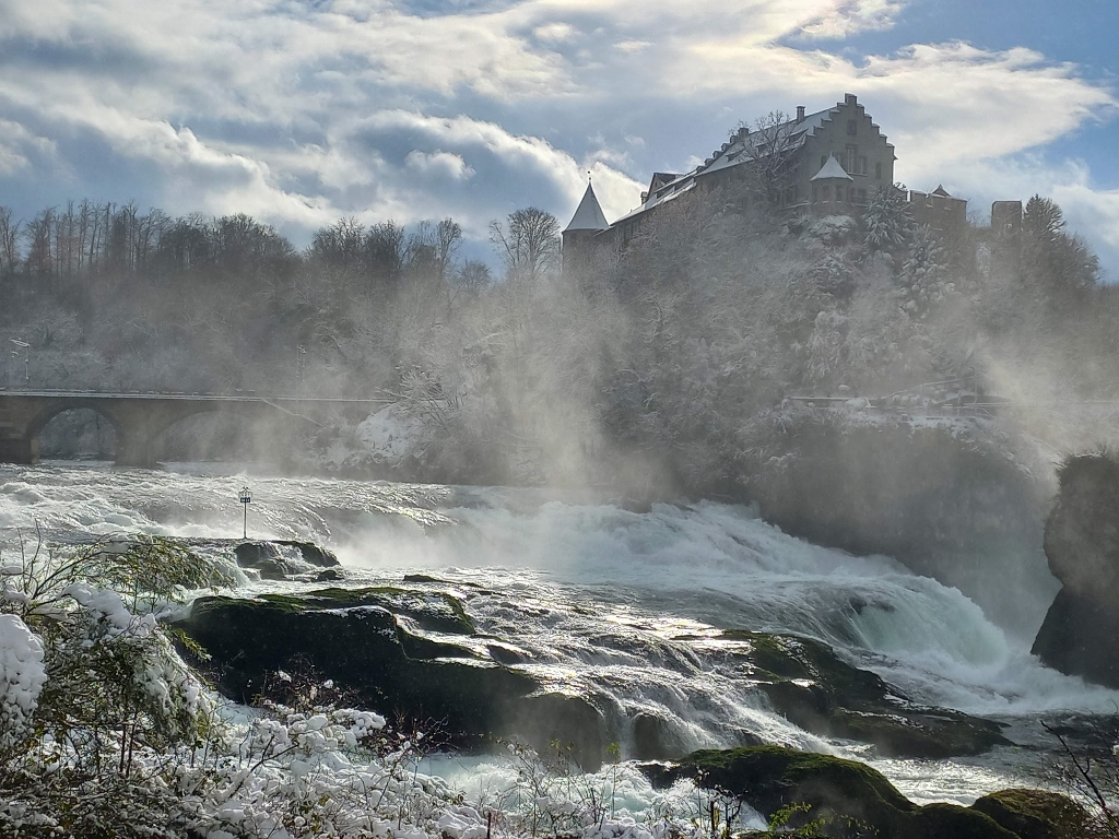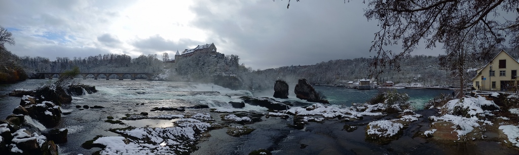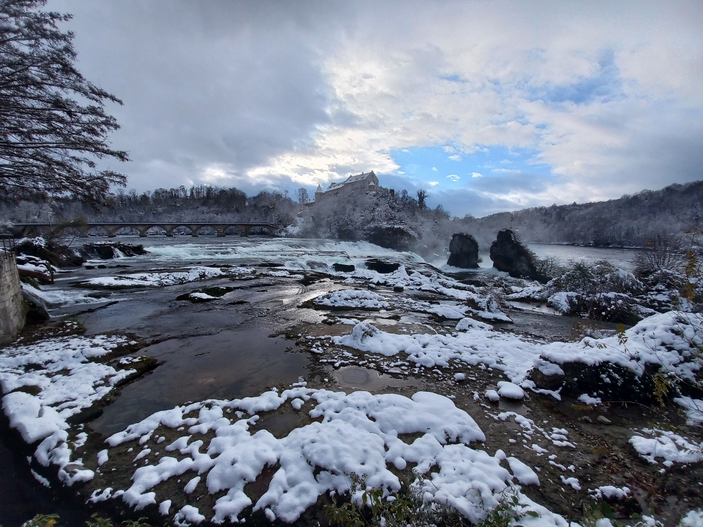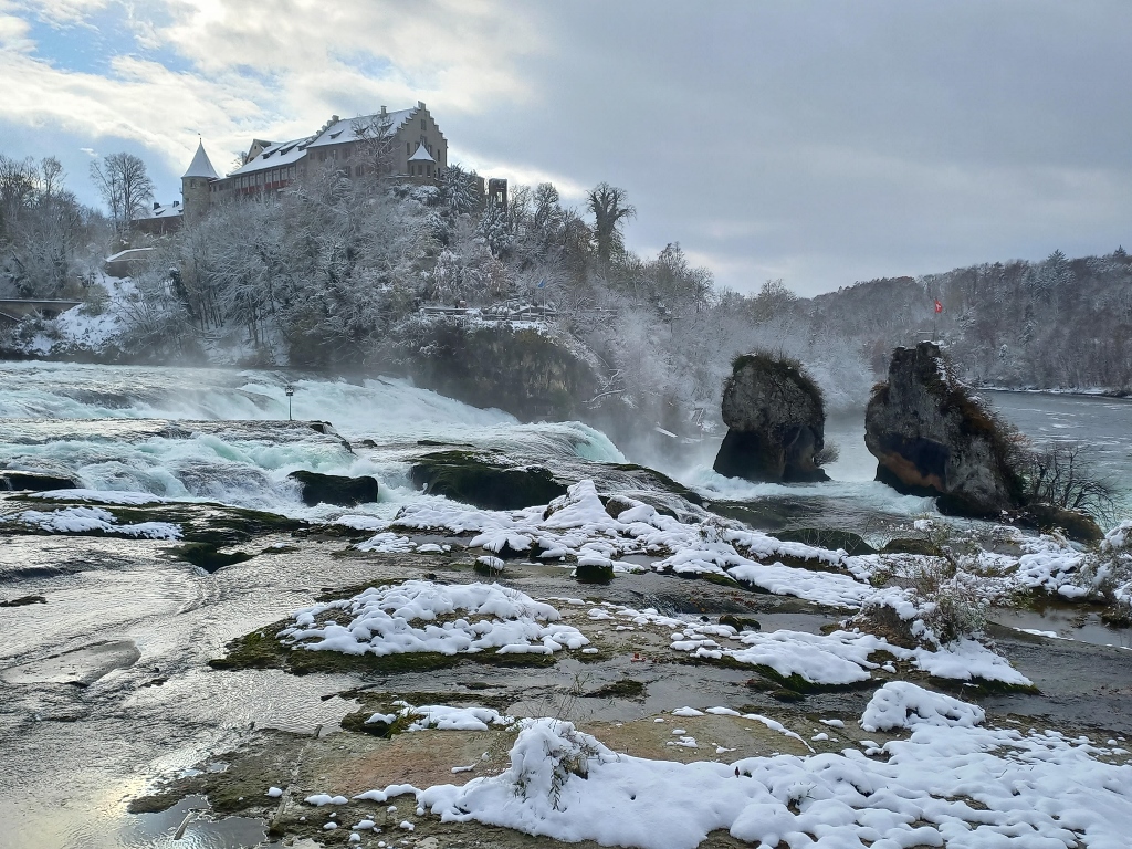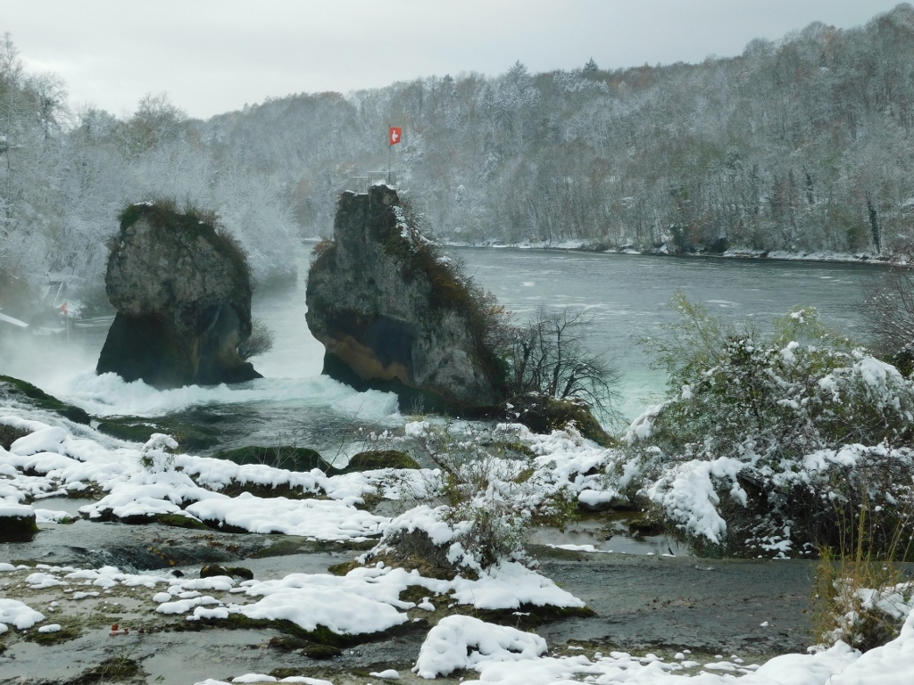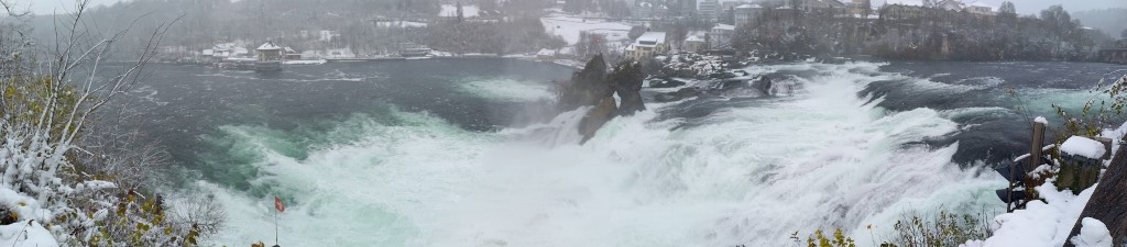 Jedino bih mogla da dodam da je u međuvremenu krenula vejavica. Bio je to sitan, ali ipak prilično intenzivan sneg. Ipak, uspela sam da napravim i nekoliko video-snimaka koje sam objedinila u kratak zapis sa leve obale Rajne. Na njemu se vide ne samo moćni vodopadi, već i koliko veje sneg, a i kako su postavljene platforme na ovoj strani reke gde se čini da čovek može gotovo rukom da dotakne reku.