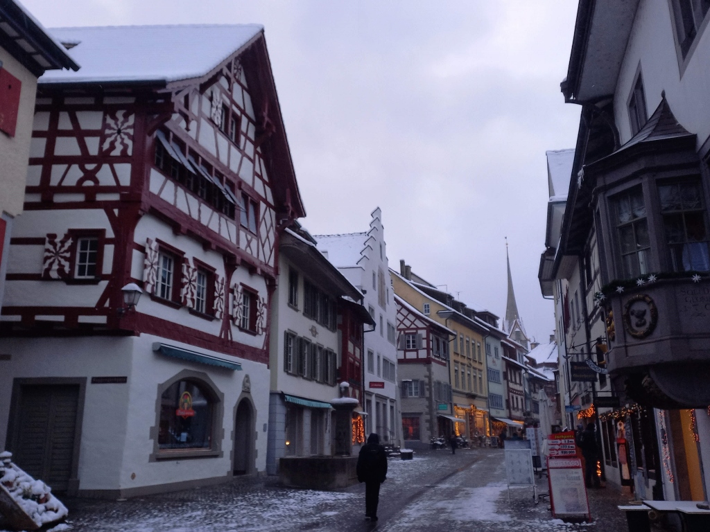 Već sam u prethodnom nastavku priča sa putovanja po Švajcarskoj krajem novembra 2024. godine pomenula da je mesto Štajn am Rajn, tj, Štajn na Rajni izuzetno slikovito. Gotovo nesrazmerno slikovito imajući u vidu da je prilično maleno – zauzima površinu od oko 6 kv. km i ima skoro 3500 stanovnika.