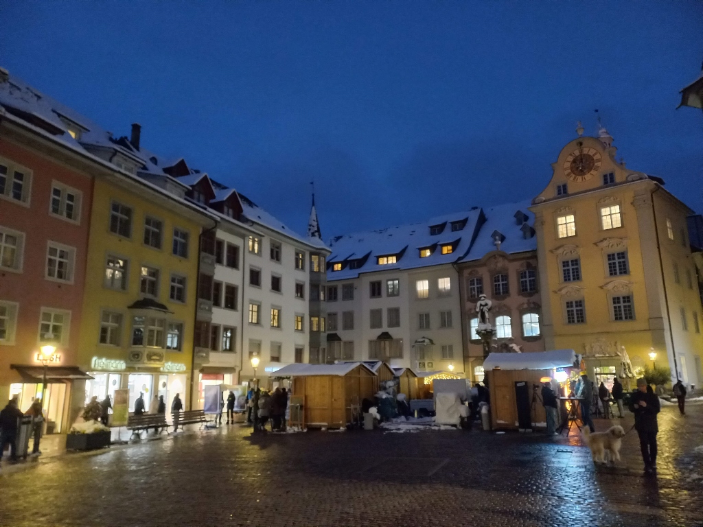 Pošto sam se i tako i tako vraćala preko Šafhauzena, odlučila sam da malo prošetam po centru starog grada koji je jako blizu železničke stanice. Mislila sam da je možda već sve ukrašeno zbog predstojećih praznika (ovde sam bila krajem novembra), ali nije bilo. Osim par kućica koje su postavljene na središnjem trgu Fronvagplac i u kojima se uglavnom prodavalo kuvano vino, nije bilo drugih aktivnih ukrasa grada.