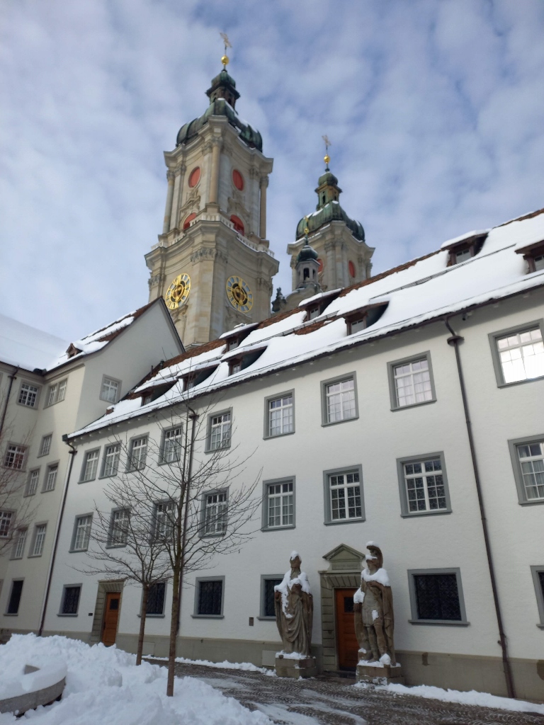 Nekada je ovde postojala opatija koja je osnovana 720. godine i koja je postala važan benediktinski manastir koji je imao pre svega intelektualni uticaj na čitavu zapadnu Evropu. Međutim, 1524. godine je uvedena Reformacija i to je dovelo do burnih vremena za opatiju. Stvari su se smirile dovoljno tek polovinom XVIII veka kada su podignute nova opatijska crkva i biblioteka. To su dva mesta koja svakako treba da se obiđu, mada manastirski kompleks, Sanktgalenska opatija, obuhvata i druge građevine, poput ove koja se vidi na sledećoj fotografiji.