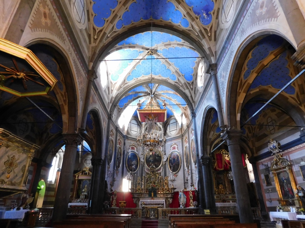 Izgradnja crkve je započela polovinom XV veka po naredbi grofa Onorea Laskarisa I, a zanimljivo je da je zvonik završen pre crkve – 1462. godine. Slikovito pročelje je nastalo u XIX veku, a portal od zelenog kamena je napravljen 1562. godine. Pošto je crkva bila otvorena, ušla sam unutra i obišla jedan krug.