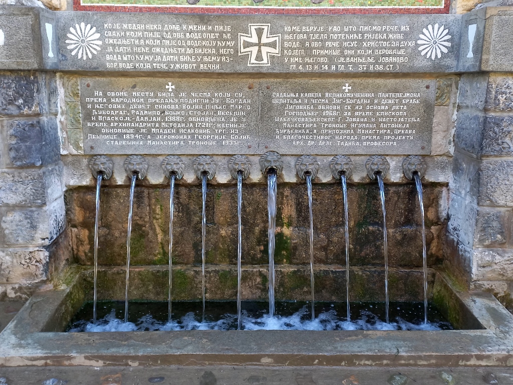 Par stotina metara pre manastira Tronoša, pored puta kojim se dolazi, nalazi se i kapela Sv. Pantelejmona sa česmom devet Jugovića.