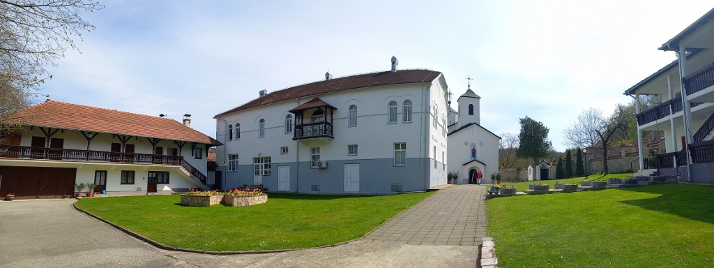 Ovde sam prvo naišla na, kako će se ispostaviti, igumaniju manastira, pa kada sam joj se javila, ona me je zamolila da joj pomognem da neke drvene klupe prebacimo sa travnjaka na betonski trem. Očigledno mi je bilo da su se tu ranije okupili ljudi, verovatno posle službe (bio je Veliki četvrtak), pa su oni otišli, a klupe su ostale na otvorenom. Pomislila sam da je to bezveze da su ljudi tako to ostavili, pošto je igumanija žena u godinama i tu je bila sama kada sam stigla. Meni stvarno nije bilo teško, pa sam klupe sama prebacila gde je trebalo, a sto smo prvo zajednički dovukle do betonskog trema gde sam ga ja onda namestila kako treba.