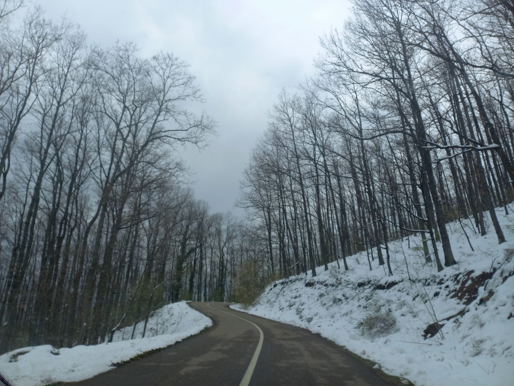 Uncleared part of the road over mount Cer in the first half of April 2023
