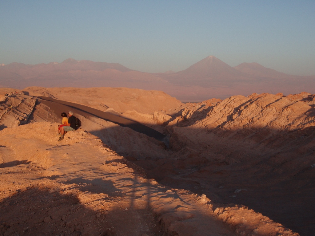 Then we headed for the Moon Valley (Valle de la Luna). The Moon Valley is a part of the Flamencos National Reserve. In order to get to this valley we partially followed the new asphalt road by which we had come from Antofagasta the day before. We passed by rocky hills the tops of which were white, but rather than snow this was all salt.