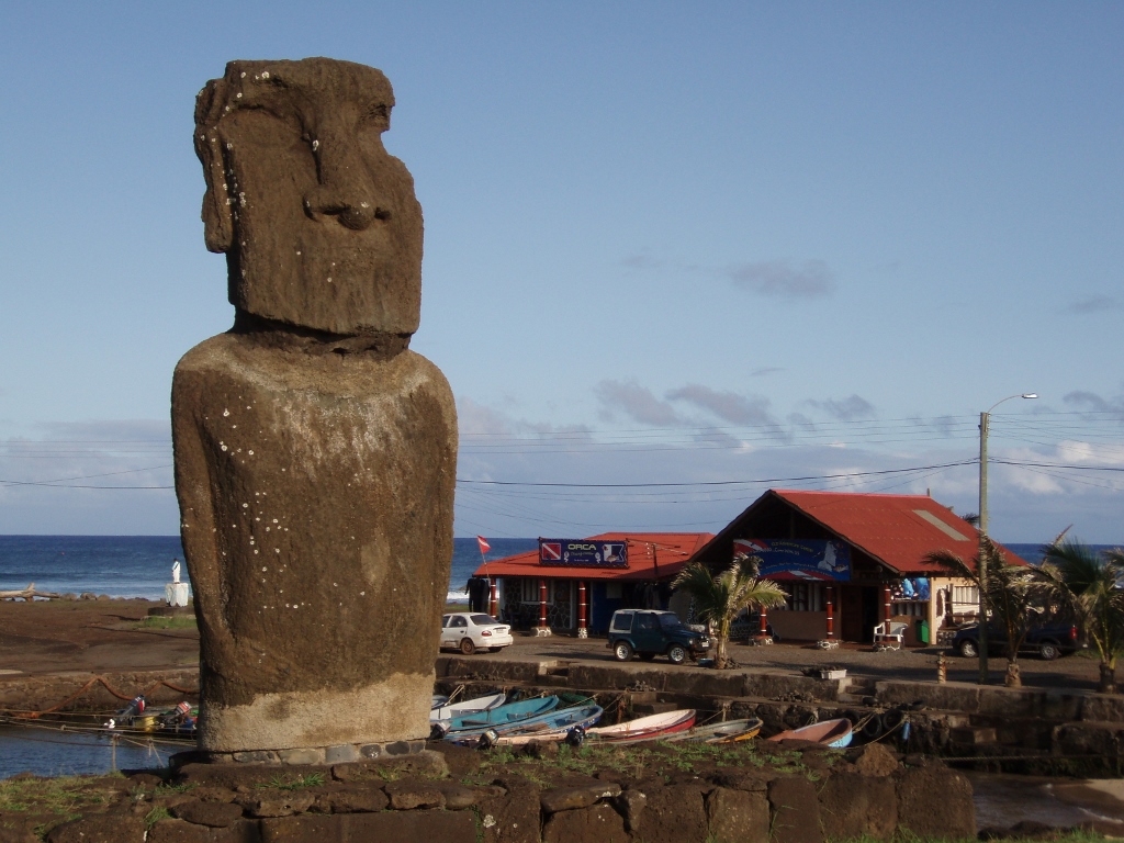 Ahu Tautira and the scuba-diving centre in Hanga Roa