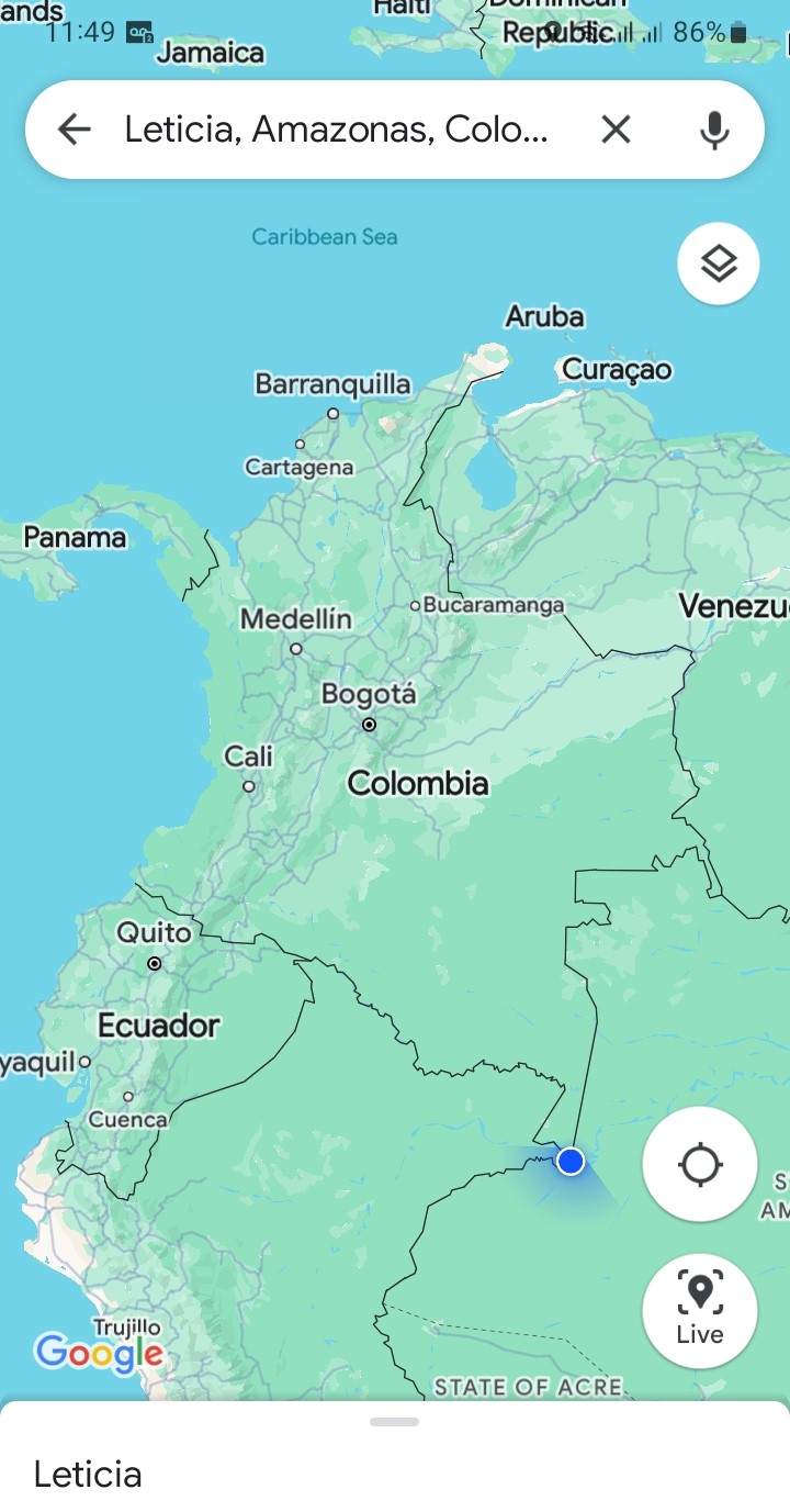 There are no roads leading to the Colombian Amazonia. While it's theoretically possible to reach Leticia, the southernmost and largest city in this region, by land, it would involve traversing through the jungle, navigating rivers and taking a significant amount of time. None of these options suited me, hence the choice of air travel. The distance between Bogotá and Leticia is nearly 1100 km and a large plane requires a full two hours to cover that distance.