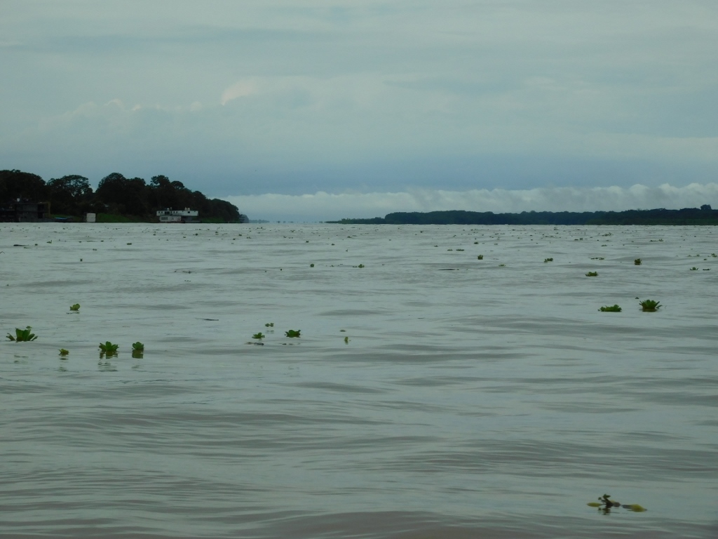 The Amazon downstream from Leticia, Colombia; Brazil is to the left and Peru is to the right